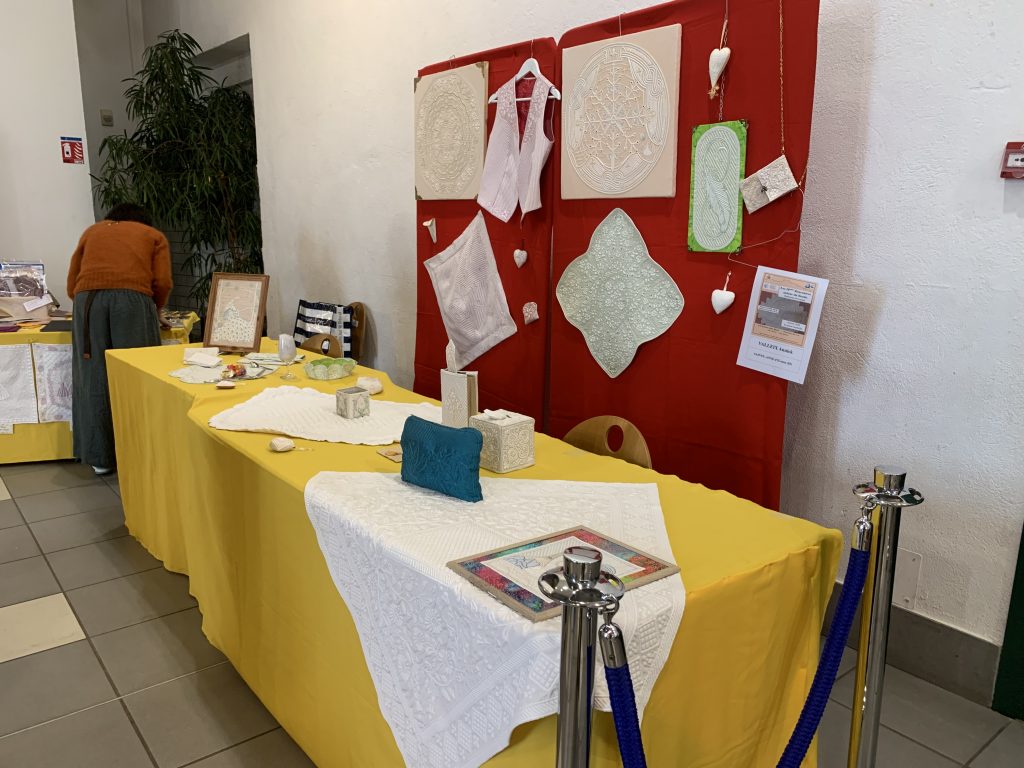 Magnifique, on ne savait plus où regarder ! Le stand d’Aiguilles Divines a bien mis en valeur les ouvrages des boutisseuses du groupe et Ludivine a fait l’admiration des visiteurs.